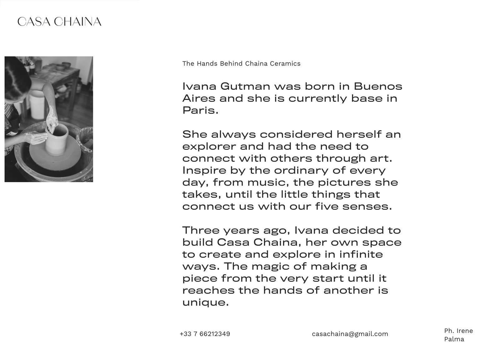 Casa Chaina made ceramics in Paris, Fr. Their believe is in the magic of making a piece from the very start until it reaches the hands of another.